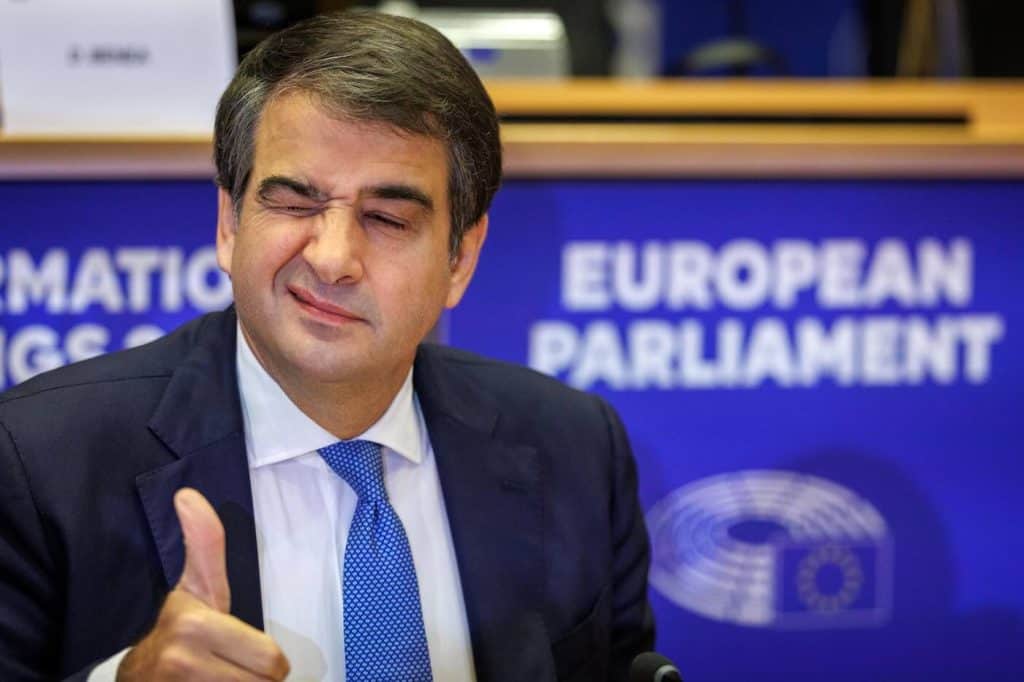 epa11715799 European Commission's Executive Vice-President-designate for Cohesion and Reforms Raffaele Fitto attends his confirmation hearing before the European Parliament committees in Brussels, Belgium, 12 November 2024. EPA/OLIVIER MATTHYS